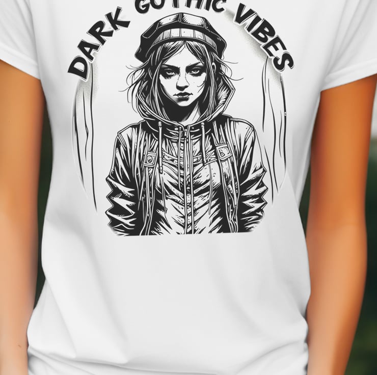 This is an original design from Screamrock inspired by the Gothic culture. Please check the size chart and let us know the size required and whether you want a Lady's or a Gentleman's. It is available in S, M, L, XL, and 2XL. We use direct-to-garment print technology. You will be delighted with the finished product.