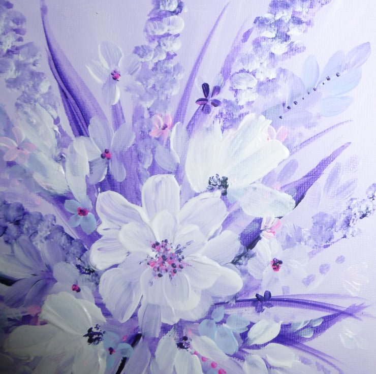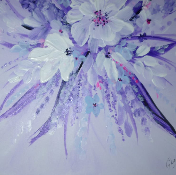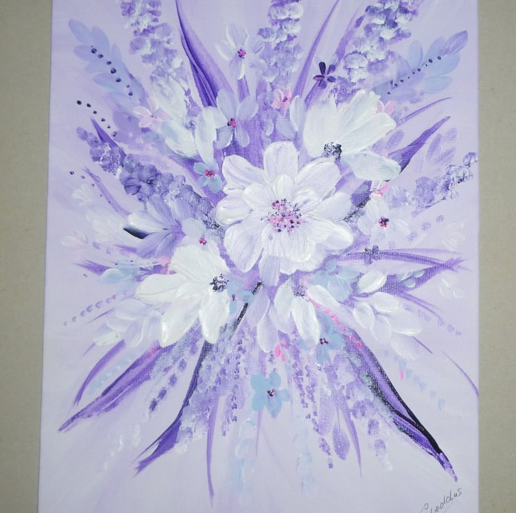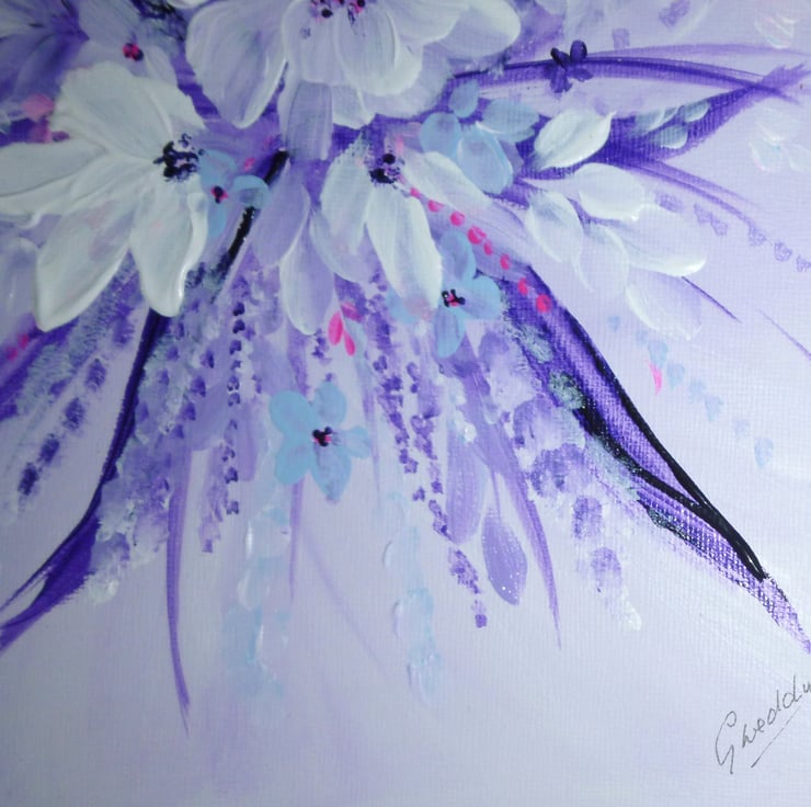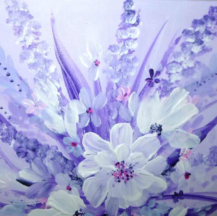 Painted on solid canvas board with artist quality acrylic paints and a touch of glitter.