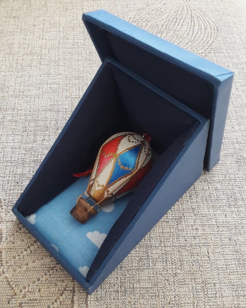 My miniature hot air balloons are made with air dry clay, sanded down into shape and then hand painted with acrylic paint, each with a unique design. I will always do a brand new design for each one, no balloon will be replicated.
