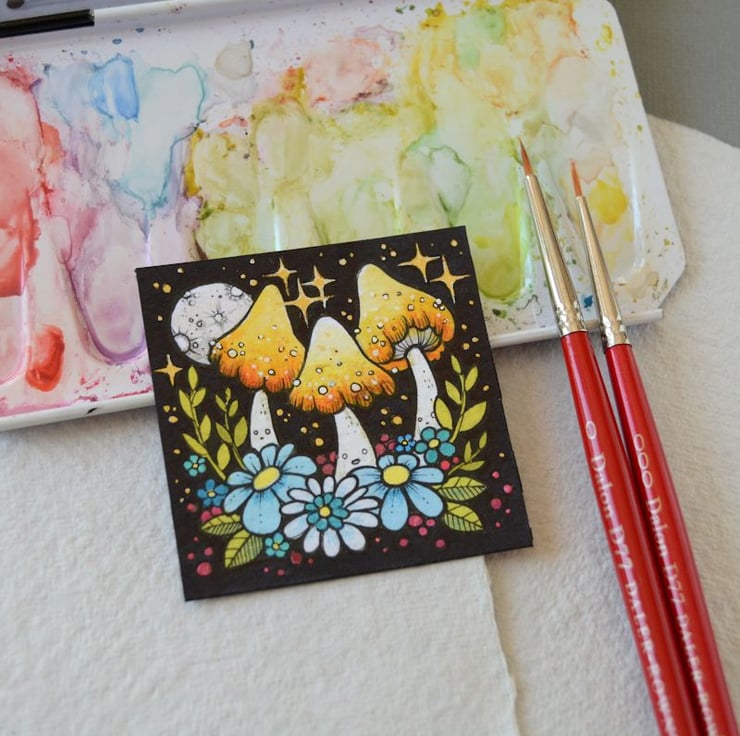 this original artwork measures exactly 2 inch x 2 inch.