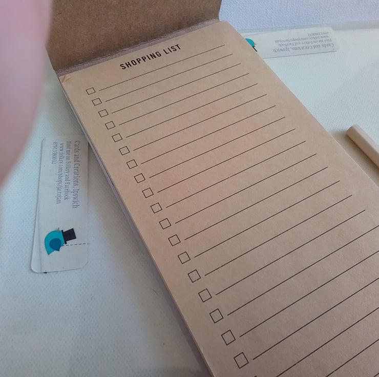 This has magnets on the reverse enabling this to be kept on the fridge so you never forget to add an items to your shopping list.