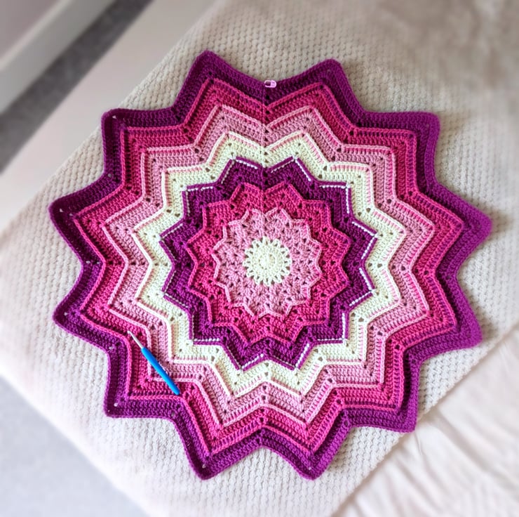 Made from 100% acrylic, aran yarn, this super soft crochet star blanket is perfect for strollers on the chilly days! It's also a great size as a lap blanket or a wheelchair blanket and would make a gorgeous addition to any chair, sofa or bed!