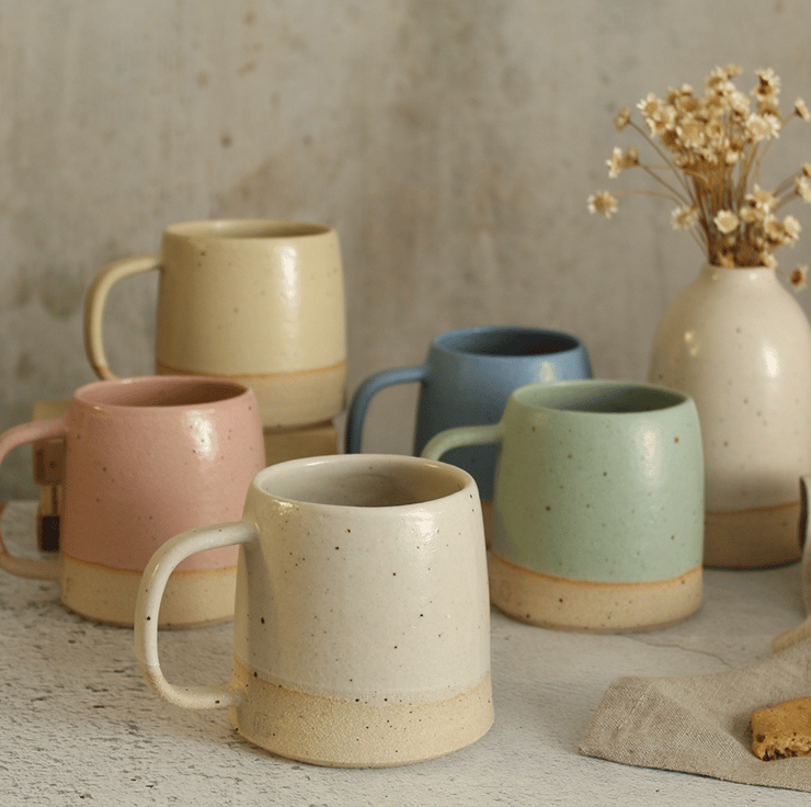 Brighten up your morning with a coffee or tea in one of our rustic-contemporary mugs; the perfect coffee cup to start your day off right. The handcrafted feel and unique pop of colour will make this handmade cup your go-to for enhancing your chosen brew.