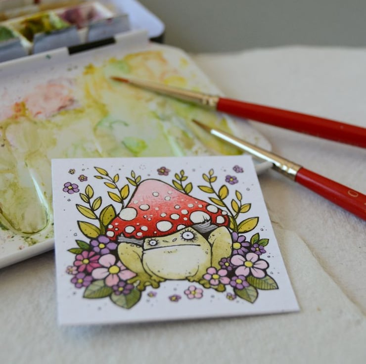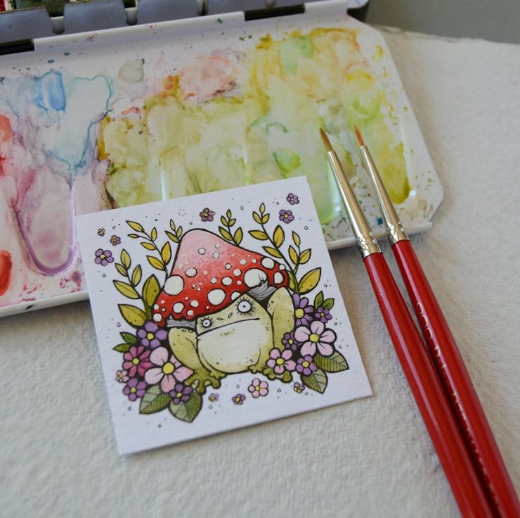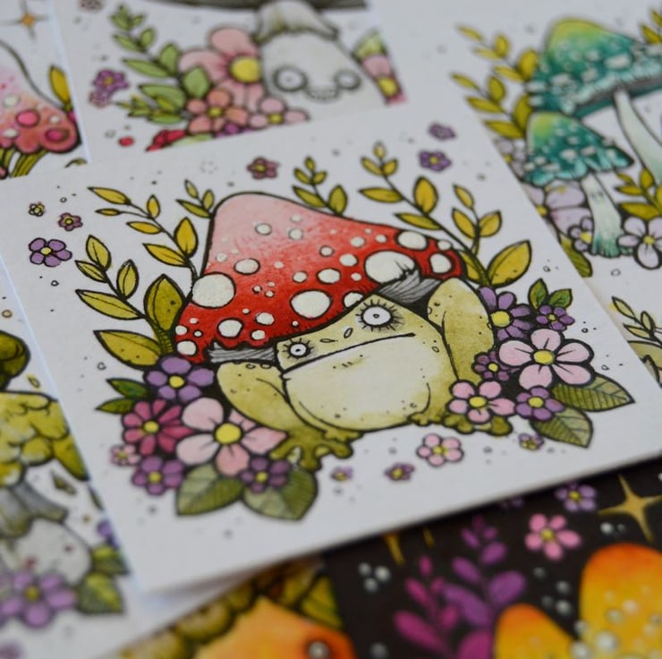it is hand drawn in ink, and coloured with art pens, pencils and watercolour paint, on a lovely textured watercolour paper. (300gsm)