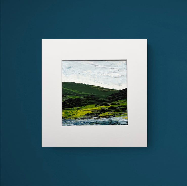 The painting size showing with mount is 5” x 5” (the actual painting size is slightly larger than this underneath mount).