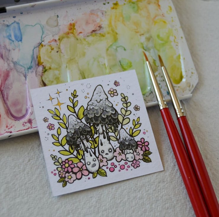 the inkcap mushroom is yet another favourite of mine - "known for their ability to melt into a black ink-like substance)" ...don't they sound just delicious? drawn on day 23.