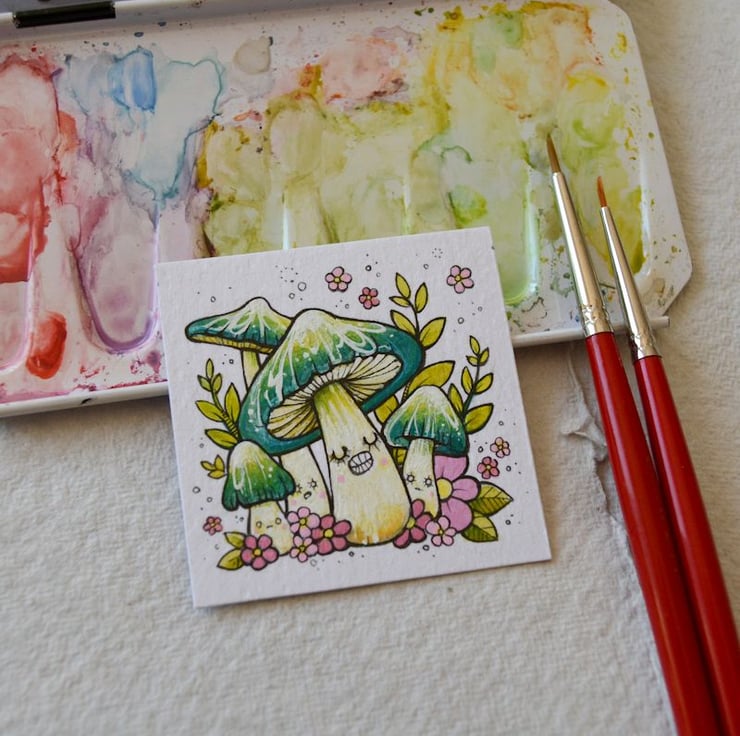it is hand drawn in ink, and coloured with art pens, pencils and watercolour paint, on a lovely textured watercolour paper. (300gsm)