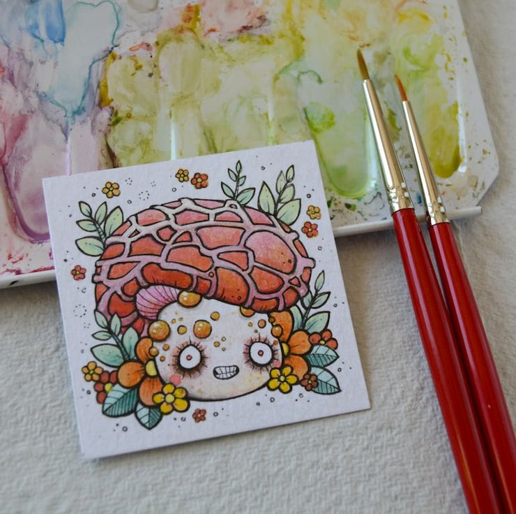 this original artwork measures exactly 2 inch x 2 inch.