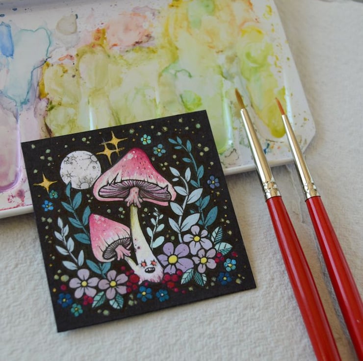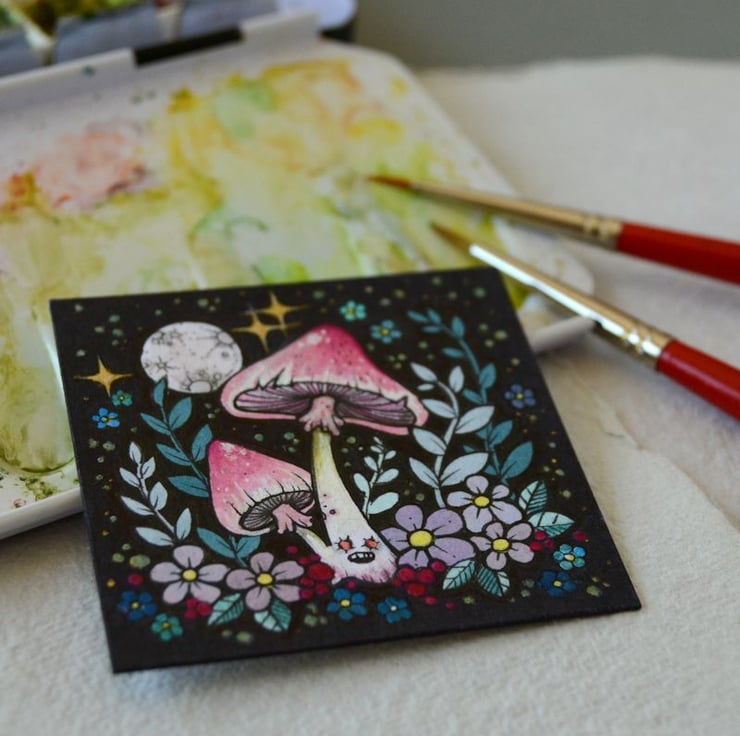 this original artwork measures exactly 2 inch x 2 inch.