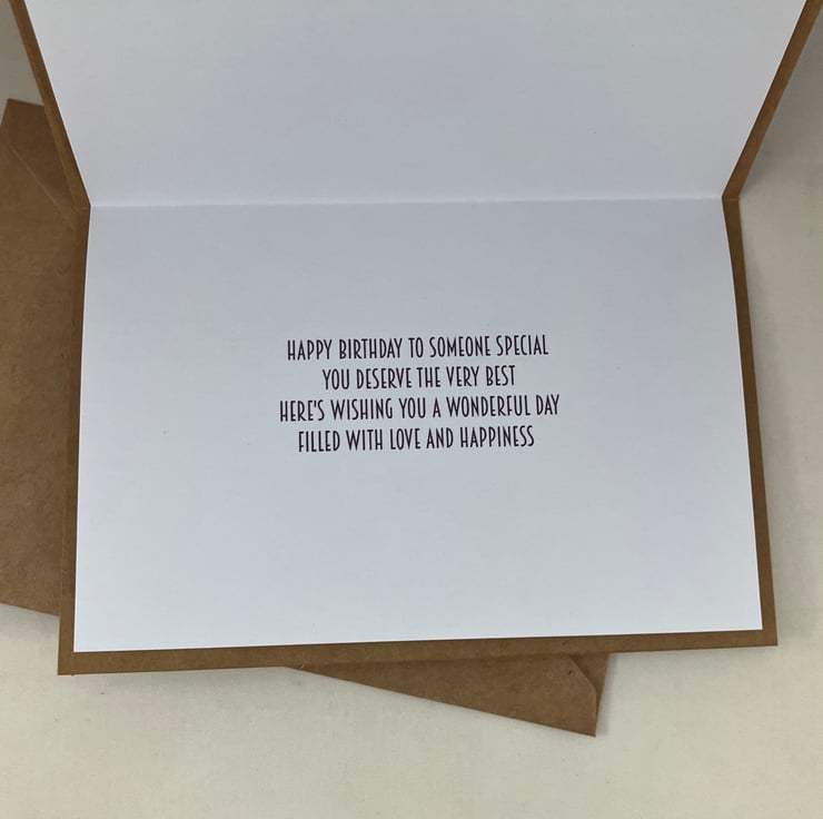 The card measures approximately 10cm x 15cm (4 inches x 6 inches) and comes with a matching kraft envelope in a sealed wrapper.