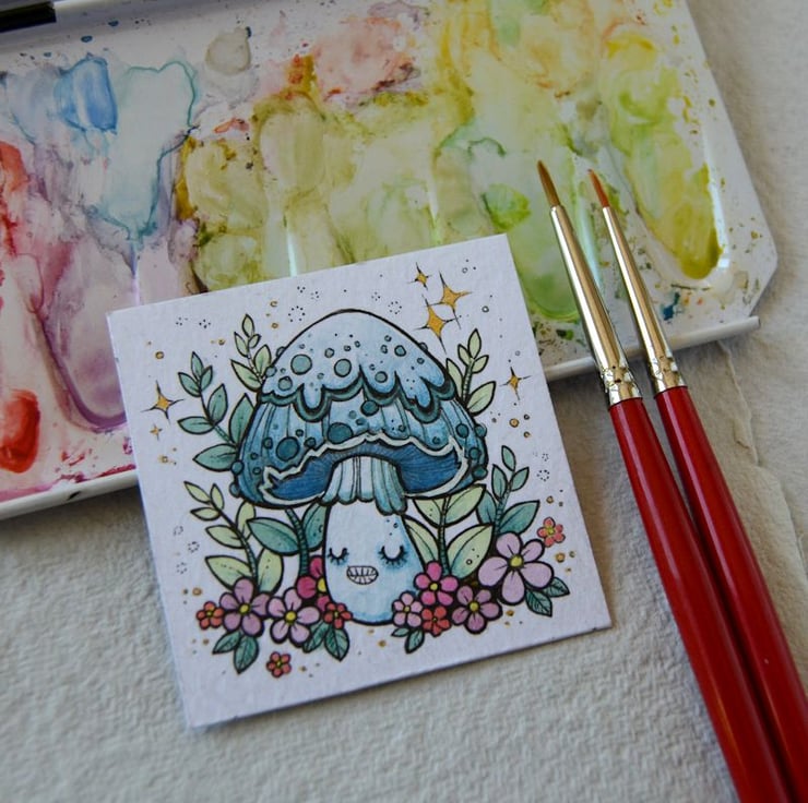it is hand drawn in ink, and coloured with art pens, pencils and watercolour paint, on a lovely textured watercolour paper. (300gsm)