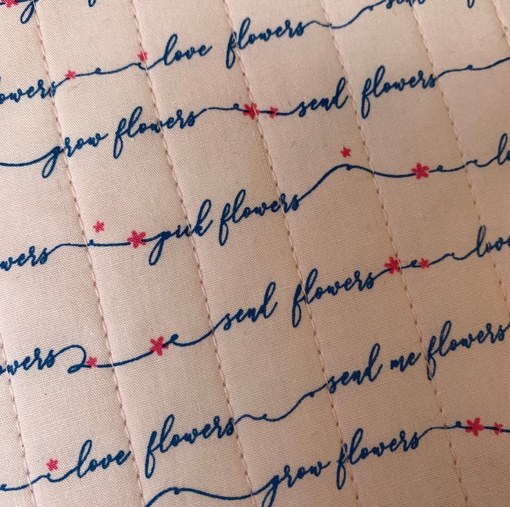 It is made in this lovely flower calligraphy print on a pale pink background.