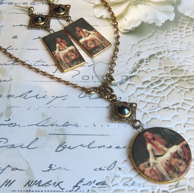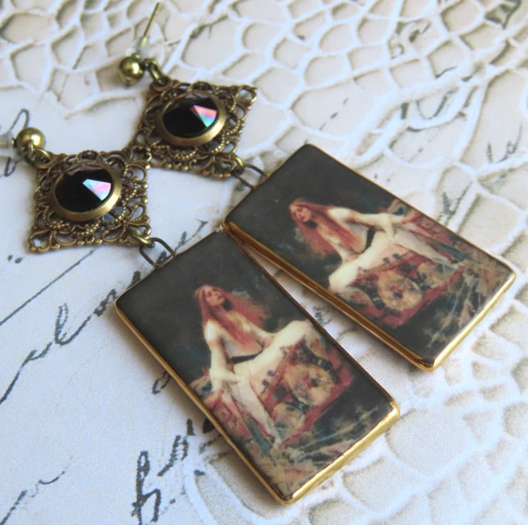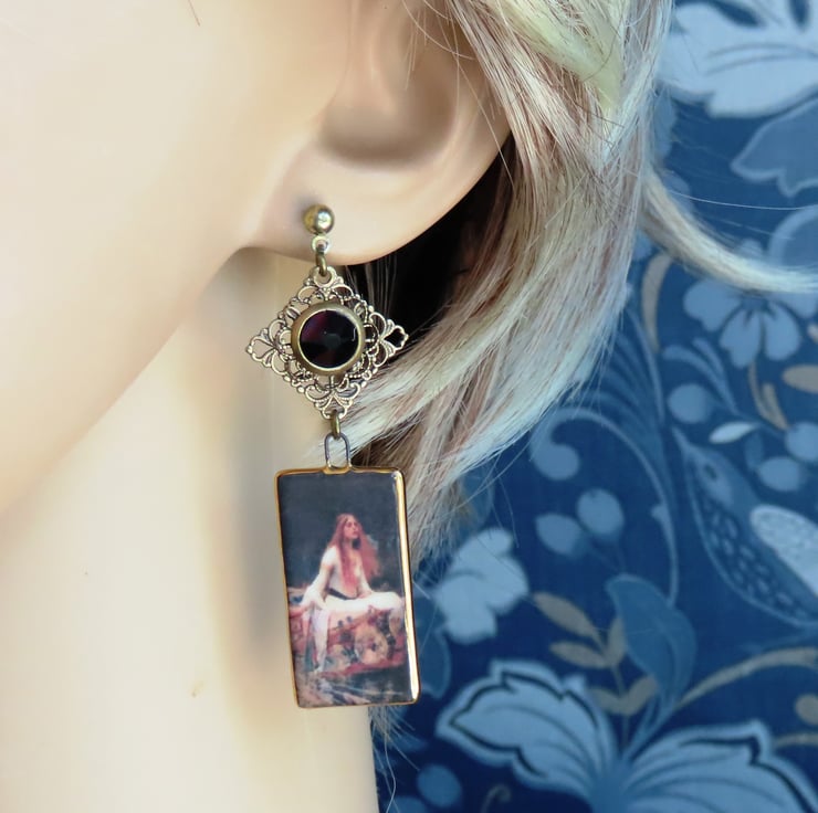 Artisan Waterhouse "The Lady of Shalott" Pre-Raphaelite style Porcelain Earrings