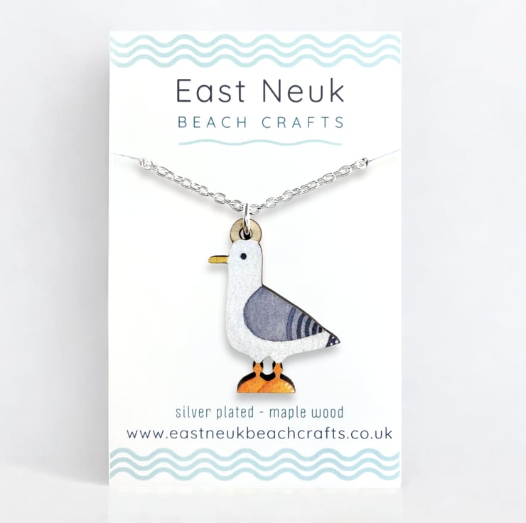 This charming wooden seagull necklace will bring a touch of the seaside to your jewellery collection. Made from sustainably sourced maple wood, the cute design is taken from an original watercolour painting and printed with vibrant detail.