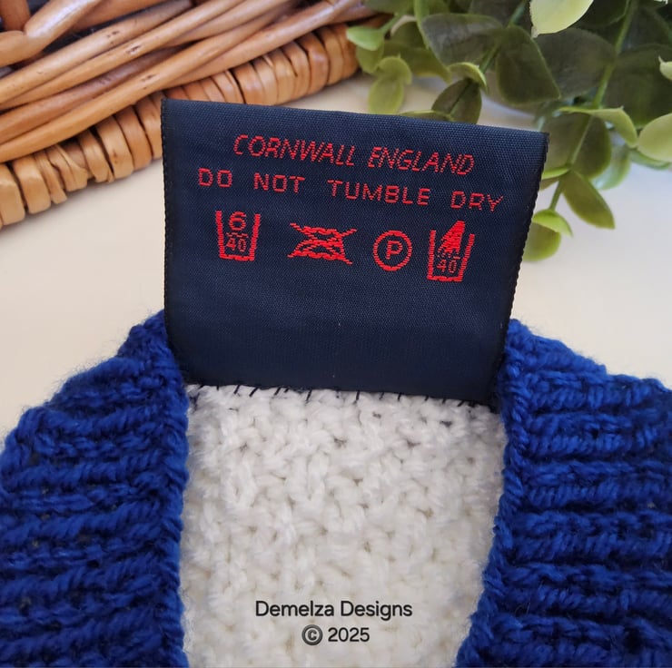 On the cardigan back neck the branded luxurious Demelza Designs garment label (also made in Cornwall) has the care instructions woven within it on the reverse side for lasting reference. Prior to dispatch a branded Demelza Designs garment swing tag will be attached to the front providing a professional touch, especially if gifting.