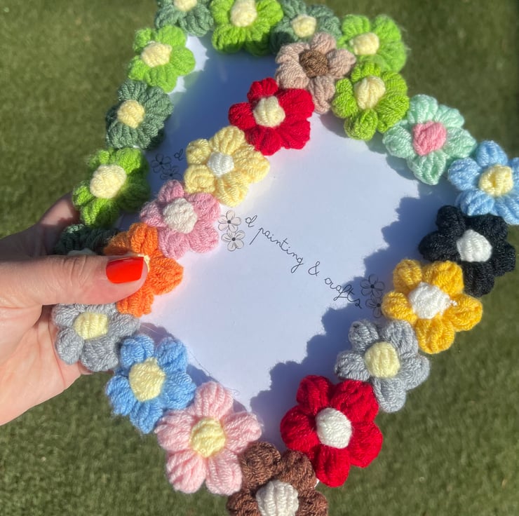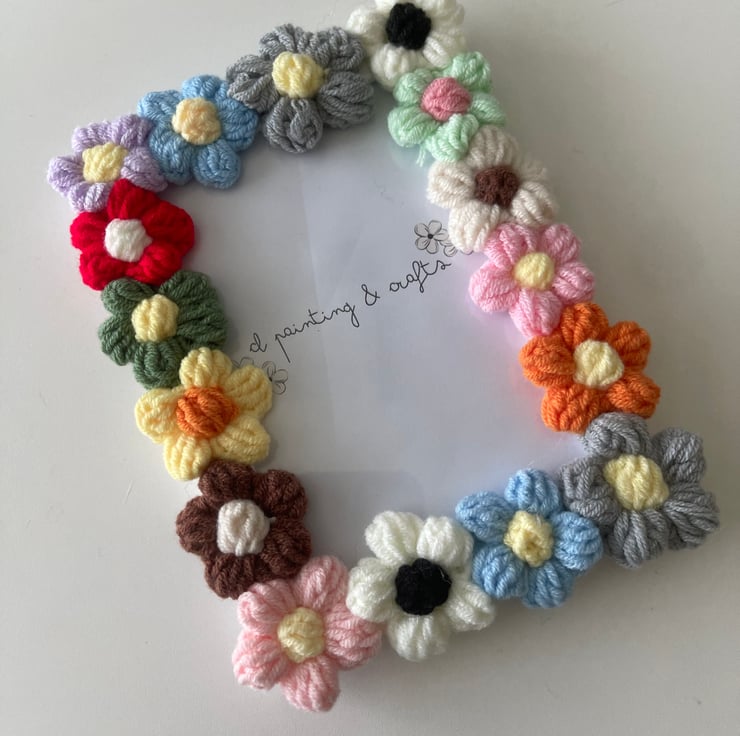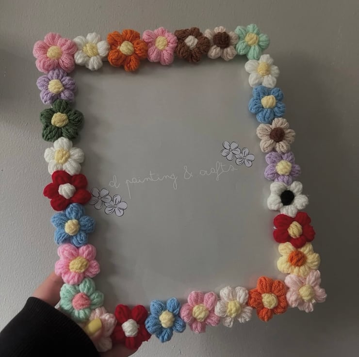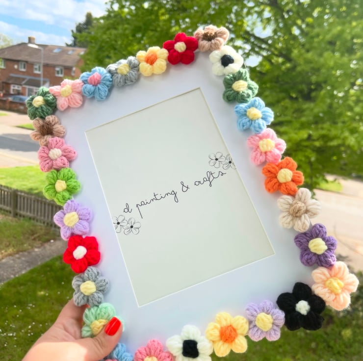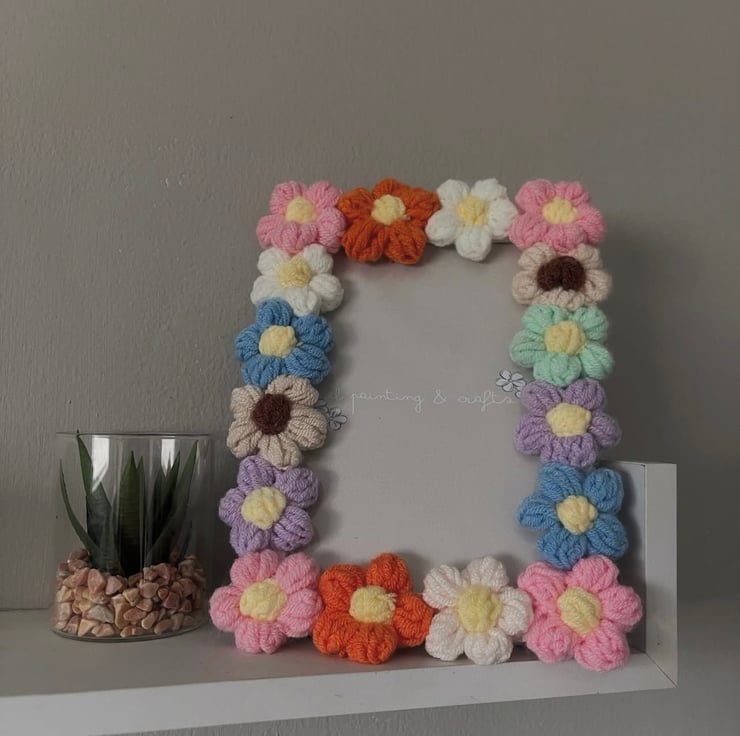 Add a touch of whimsical charm to your decor with our handmade puff flower photo frame. Each frame is crafted with care in random colors, ensuring a unique and vibrant look every time. Available in three sizes to suit any photo, this frame is made to order with a maximum 1 week production time. Perfect for displaying your favorite memories or giving as a thoughtful gift. Brighten up any space with this colorful and customizable photo frame.