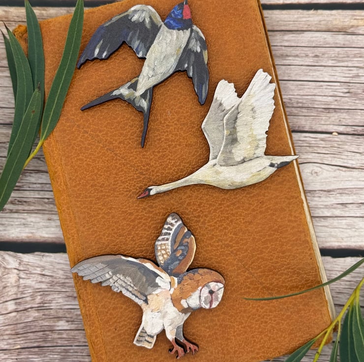 Beautiful hanging wooden decoration with original Swallow bird design from my original painting and laser cut to the outline of the swallow to make it look like a realistic miniature animal.