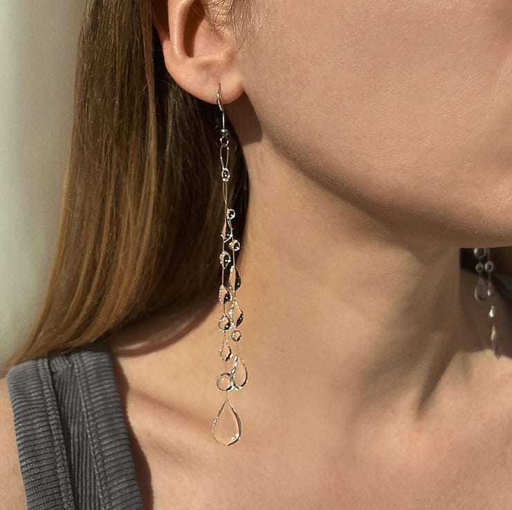 Long raindrop earrings, minimalist jewellery, water inspired earrings