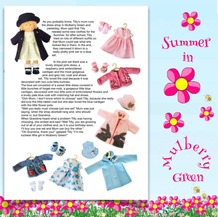 There are other children in Maisy’s class at school - Violet, Billy with his pet rabbit, Amber, Tilly, Rosie and her kittens, Amelia, Ruby, Marigold, Bobby with Max the dog, and the twins Oliver and Olivia, who have a puppy called Oscar. The dolls are all 26cm tall and baby Daisy is 16cm. Maisy and Mo love nothing more than having adventures with their friends. You can read about their adventures on my Facebook and Instagram pages - Maisy Muffin Rag Dolls and on my Mulberry Green Pinterest boards.