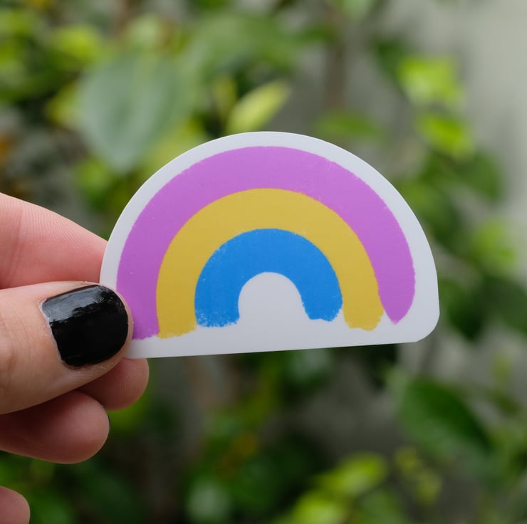 These hand-drawn pride rainbow stickers are here to bring some soft, colourful joy wherever you stick them — on your water bottle, journal, phone case, mirror, or anywhere you need a little gender sparkle.
