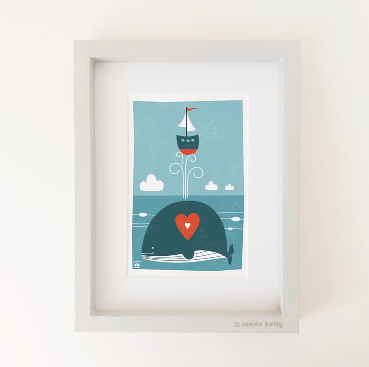 Whale Of A Time, whale with sailing boat illustration, Giclee print