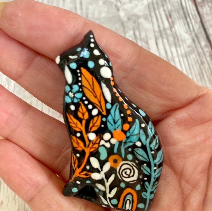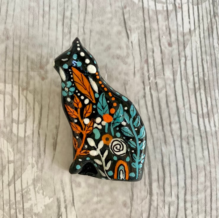 Hand Crafted and Hand Painted Cat Brooch - Boho Style