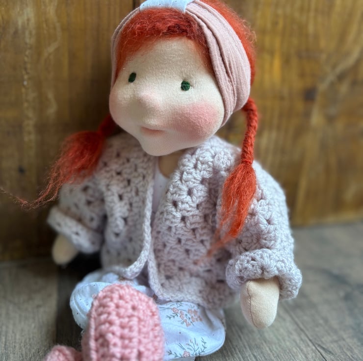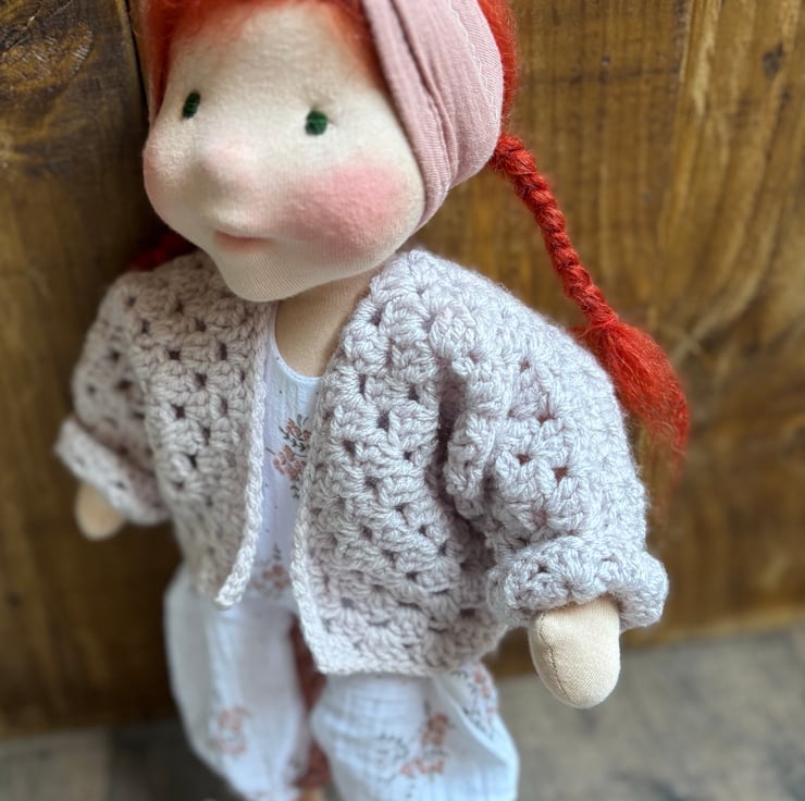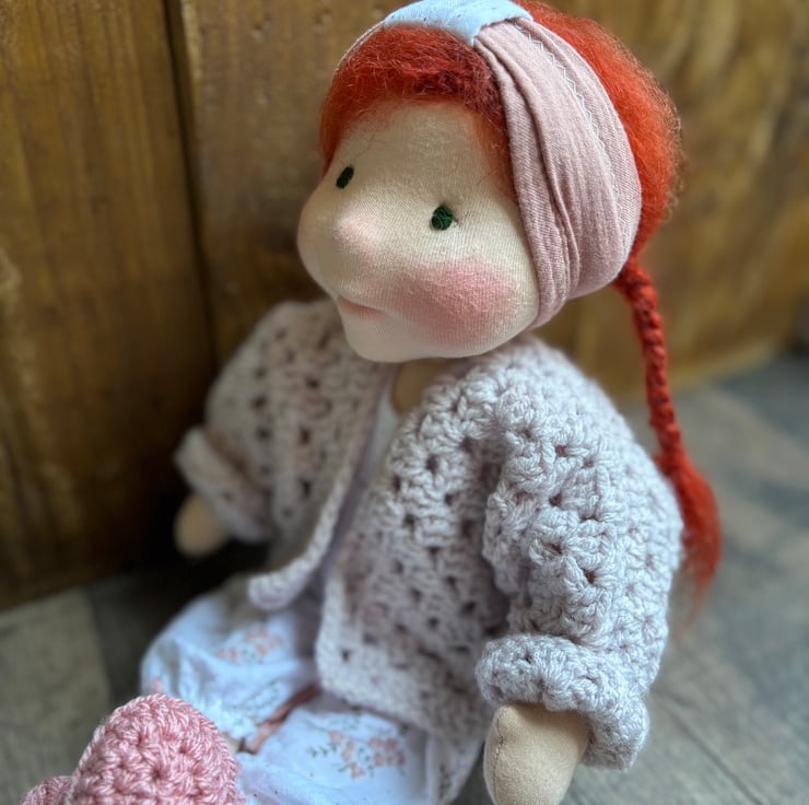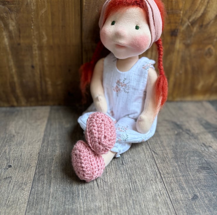 She comes dressed in hand crocheted shoes