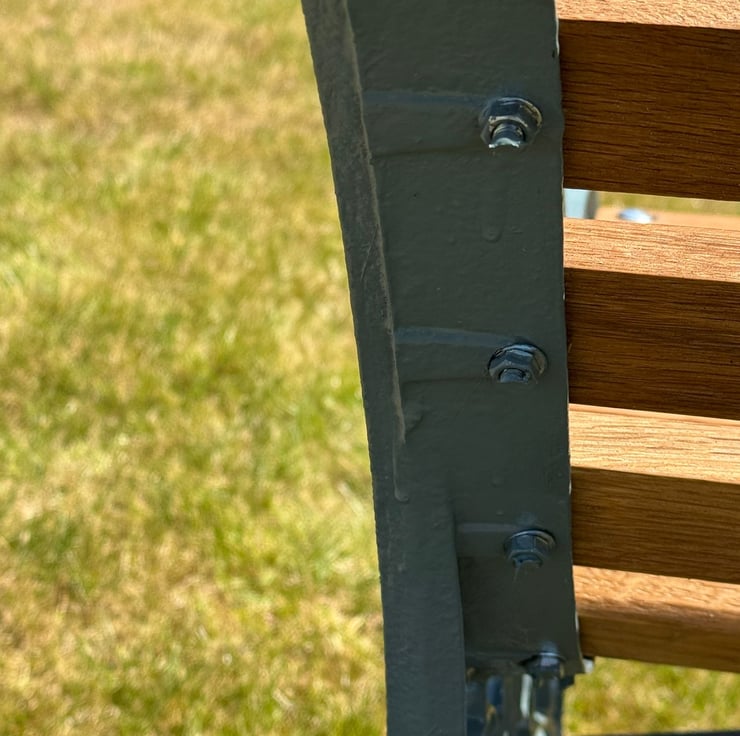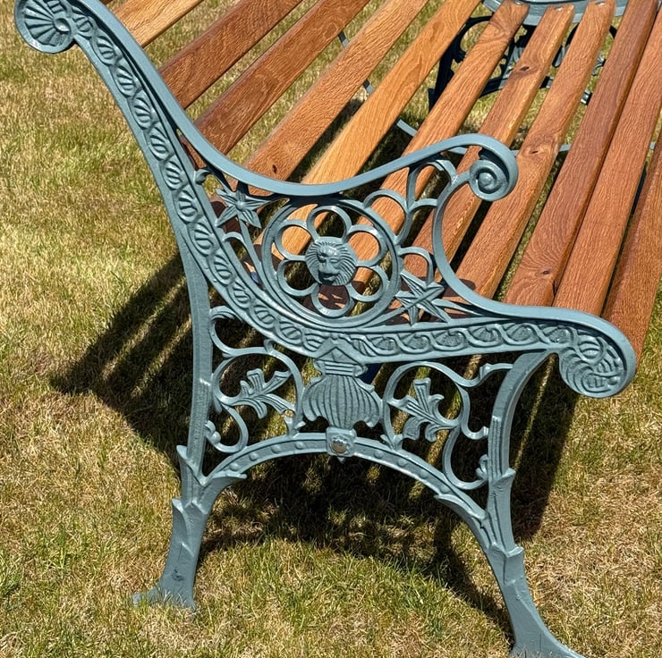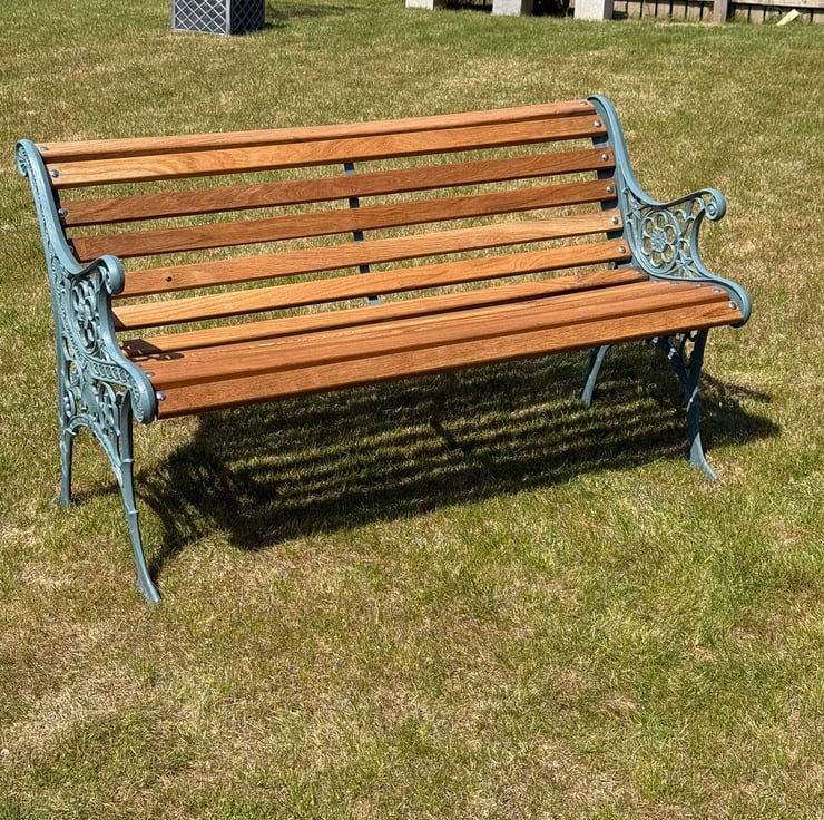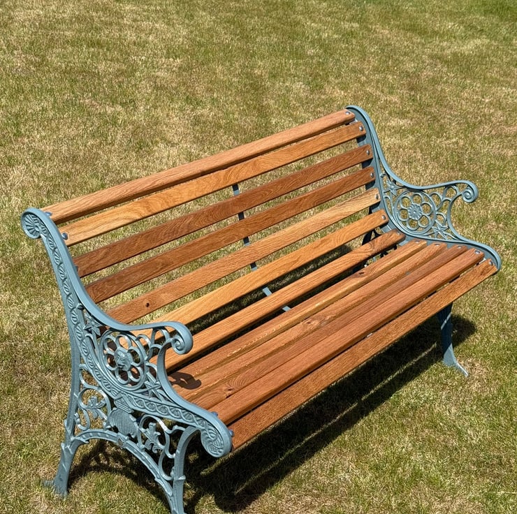 I keep receiving requests to refurb garden benches where the wood is rotten due to the weather and the cast iron ends are rusty and dusty, making the whole bench look awful. I thought to myself, why not purchase some cast iron bench ends and go into production or even accept a customers' falling to pieces bench in PX for one of mine. This bench is one of a few and can be customised to your own coloured ends.