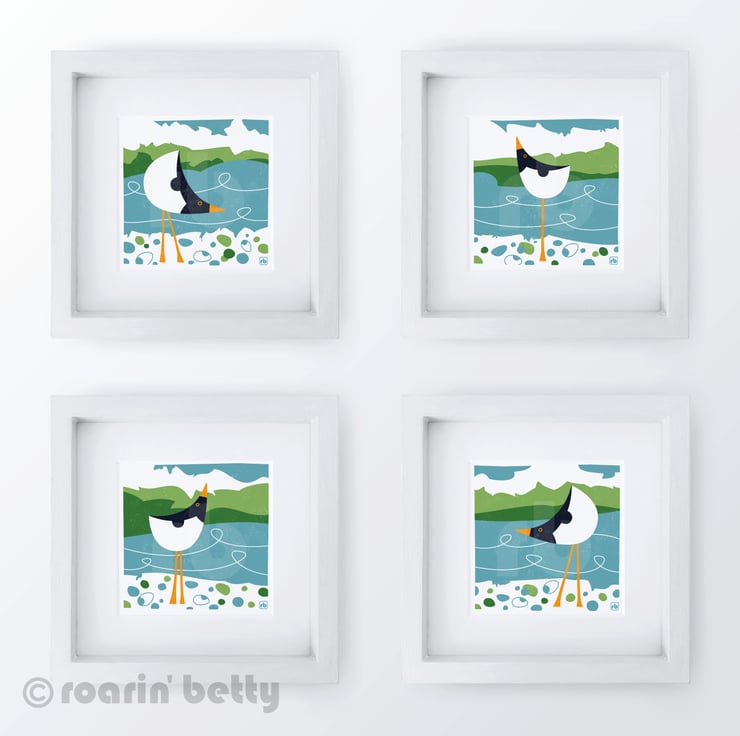 This illustration is inspired by the sights and sounds of the Oystercatchers at low tide.