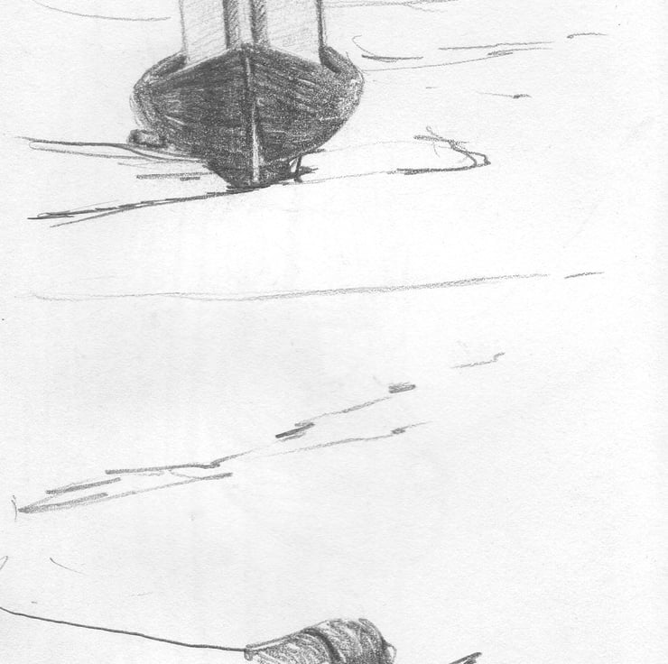 I wanted to make a simple image for a card, and remembered a drawing that I had made many years ago at the docks in Cardiff, when small fishing boats used to moor and then end up sat on the mudbanks at low tide, back in the days before the Bay Barrage! The design was actually carved into lino in 2012, but I didn't decide to use it for cards until a few years later.