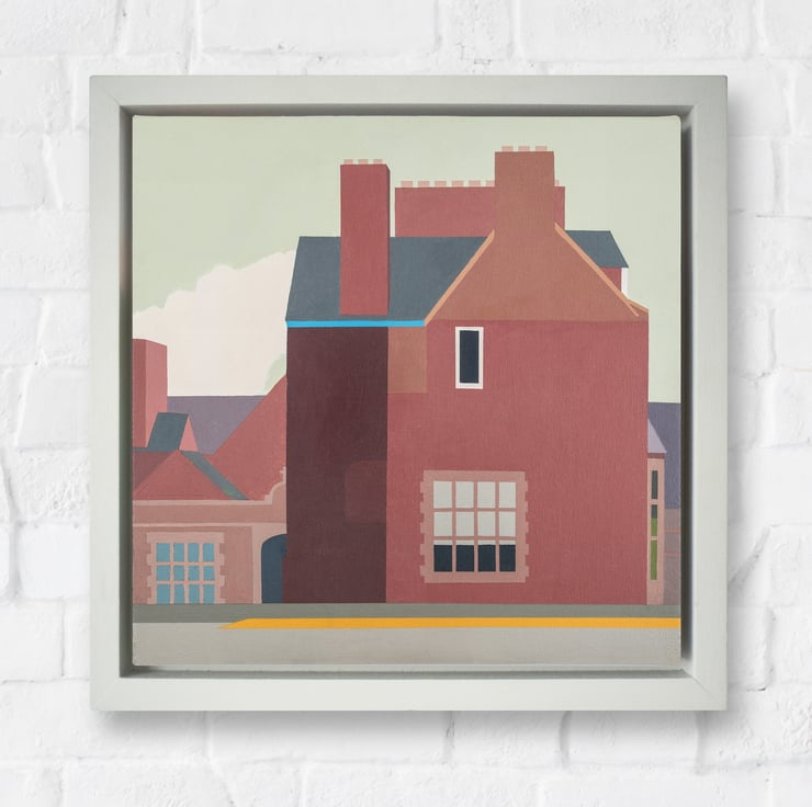 The painting is 30 x 30cm, the frame is 35.5 x 35.5cm.