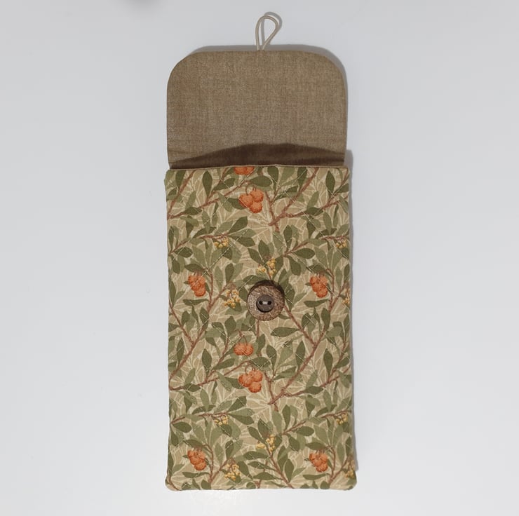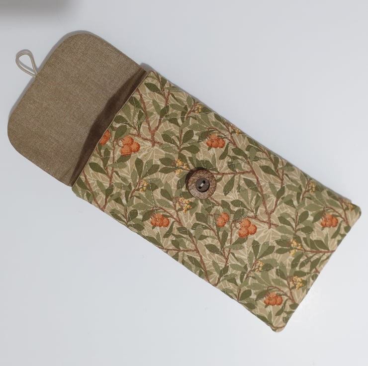 Floral themed Mobile Phone or Glasses Case in 100% cotton Button fastener 010