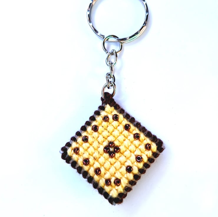 Key Ring, Embroidered with Beads on Plastic Canvas