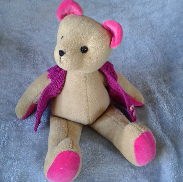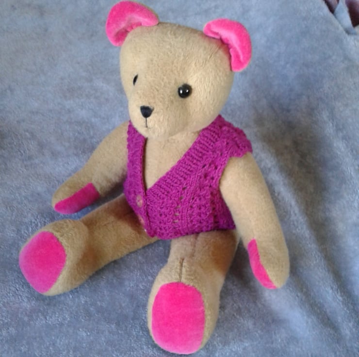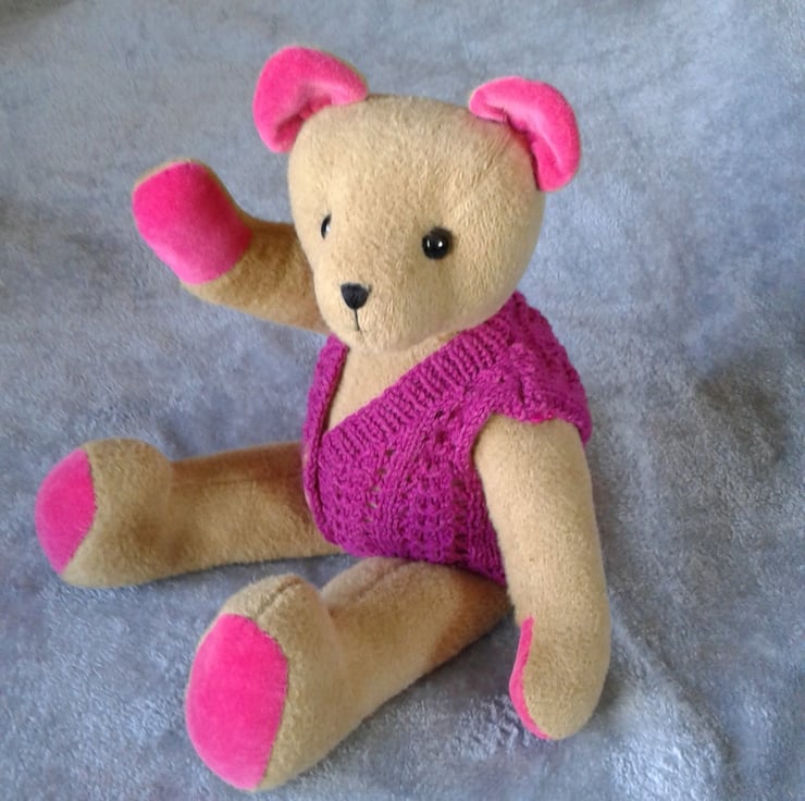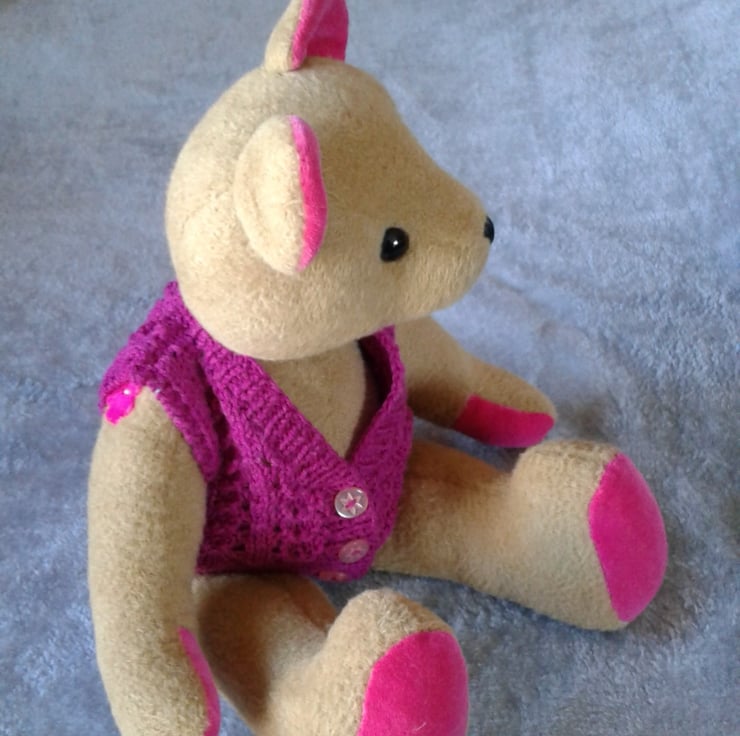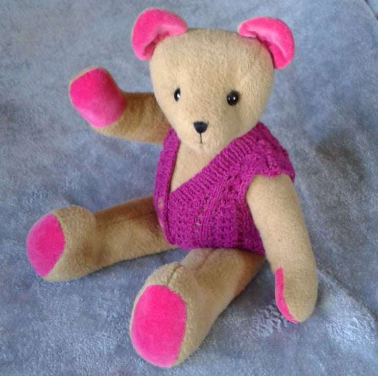 Bear 'Crumble' a 15" cotton fleece cutie with velvet paws and knitted waistcoat