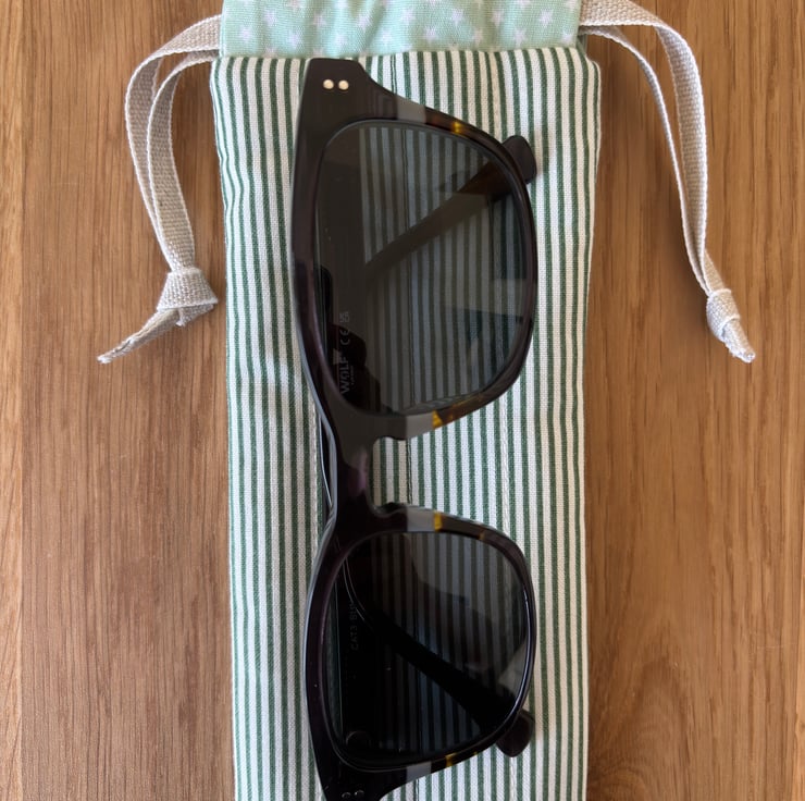I designed this pouch with a drawstring to avoid using sharp poppers or clasps that may scratch your glasses as you slide them in and out. The drawstring also makes a useful carry handle.