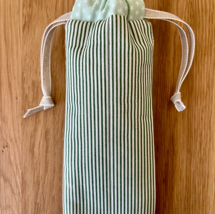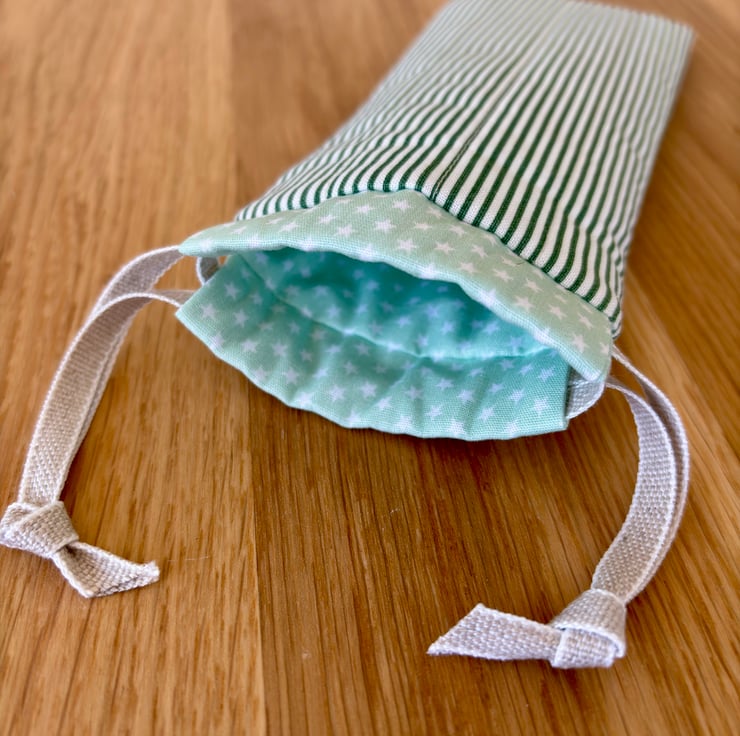 Fully lined in a soft green cotton with white stars, and finished with a linen style drawstring ribbon.
