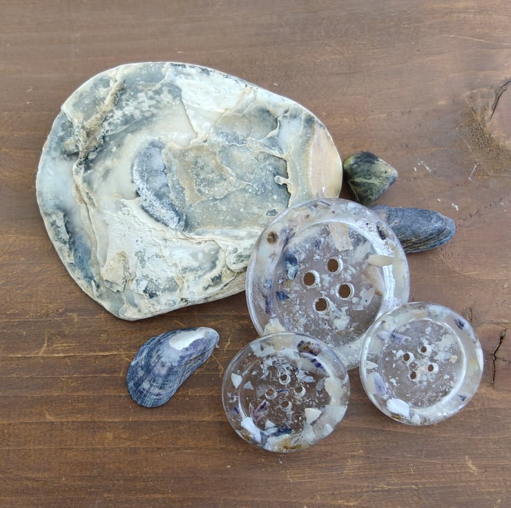 I was inspired to create my own buttons when I couldn't find what I was looking for for my Seashore Collection. After a bit of trial and error I came across the idea of actually using the seashore to make the buttons and they've now become my signature for my knitwear.