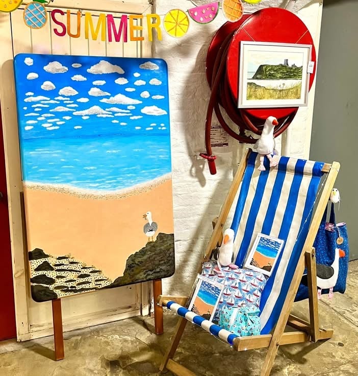 The story of this print is pretty random. I had a table top which needed a new lease of life after having been used outside my shop as a display area. What better idea than to create a piece of art from an old table top standing on its side! So, my paint brushes and paint came out and that’s where it began.