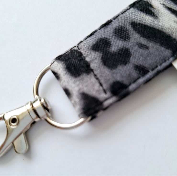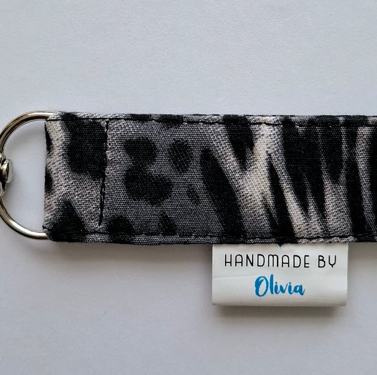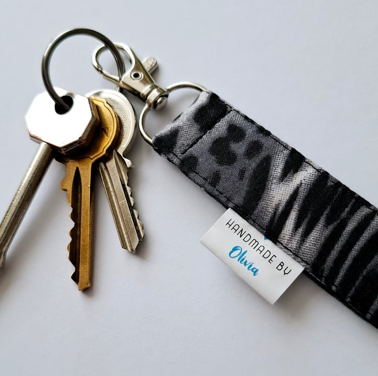 This cute micro keyring was handmade using some black and grey animal print cotton fabric. It makes a lovely accessory that could be clipped onto a handbag, tote bag or used as a keyring and would make a sweet handmade gift. There are many uses.