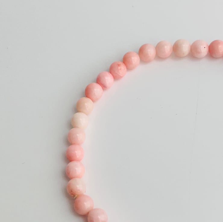 - 3.5 – 4 mm polished coral beads in dreamy pastel pink.