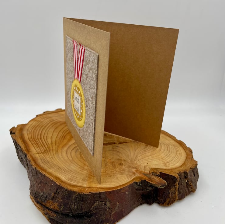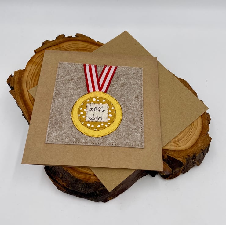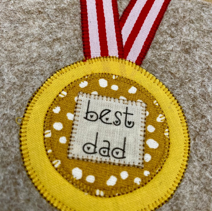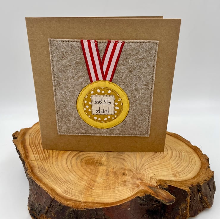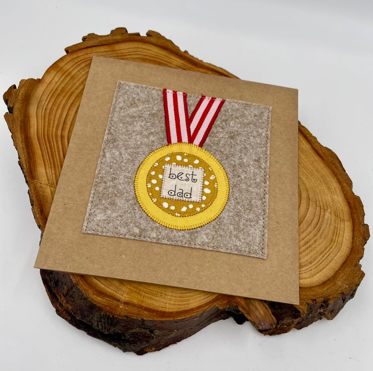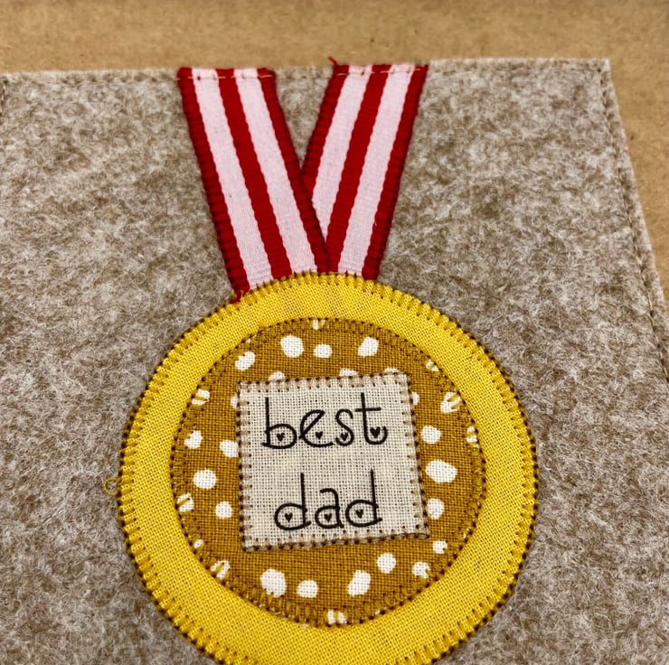 A cheerful handmade card with a fabric ‘Best Dad’ medal, perfect for Father’s Day or his birthday. A sweet way to show him he’s the best, plain and simple.