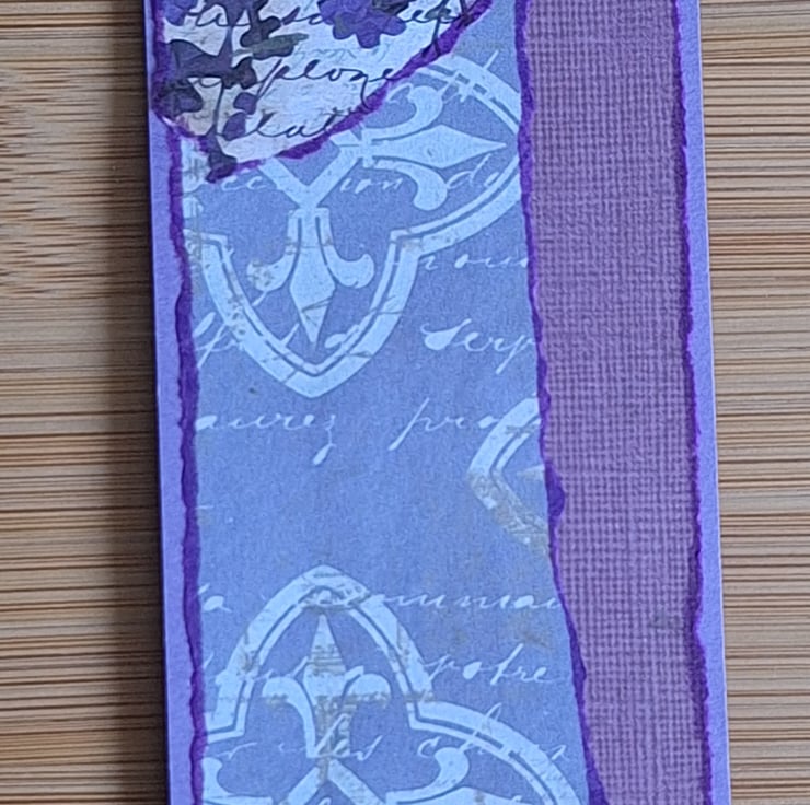 Bookmark made using kraft card and digitally purchased and printed, decorative papers. Measures 2 inches by 7 and a quarter inches (5 cm by 18.5 cm approximately). Handmade with intention, each one is unique, decorated for the season, with an inspirational word.