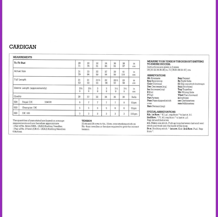 This hand knit PATTERN is for a ladies lacey jacket, To fit bust: 71 (76: 81: 86: 91: 97) cm or 28 (20: 32: 34: 36: 38) inches. The cardigan is knitted in a double knitting yarn using 3.25 mm and 4 mm knitting needles.