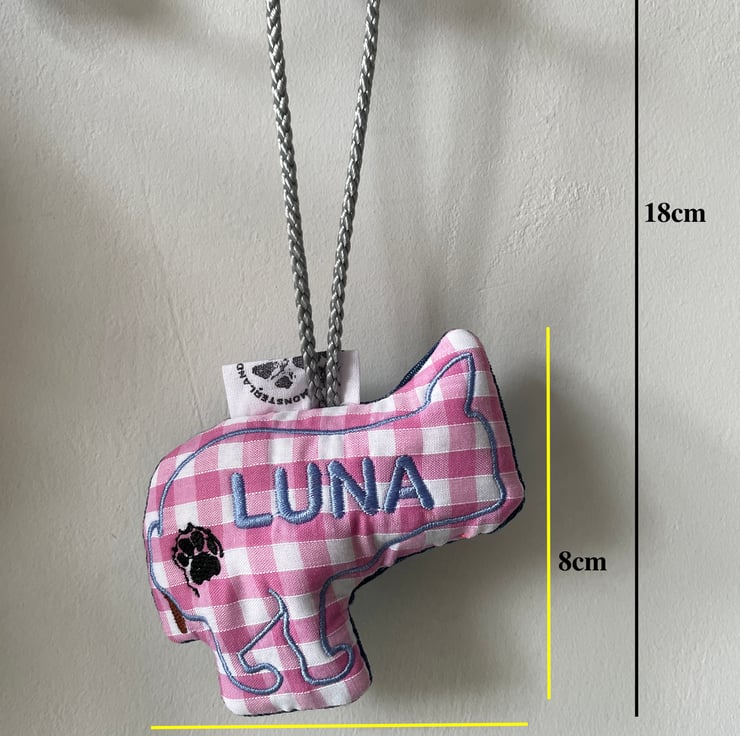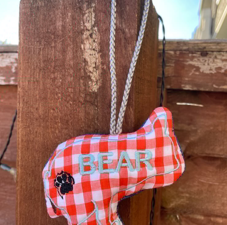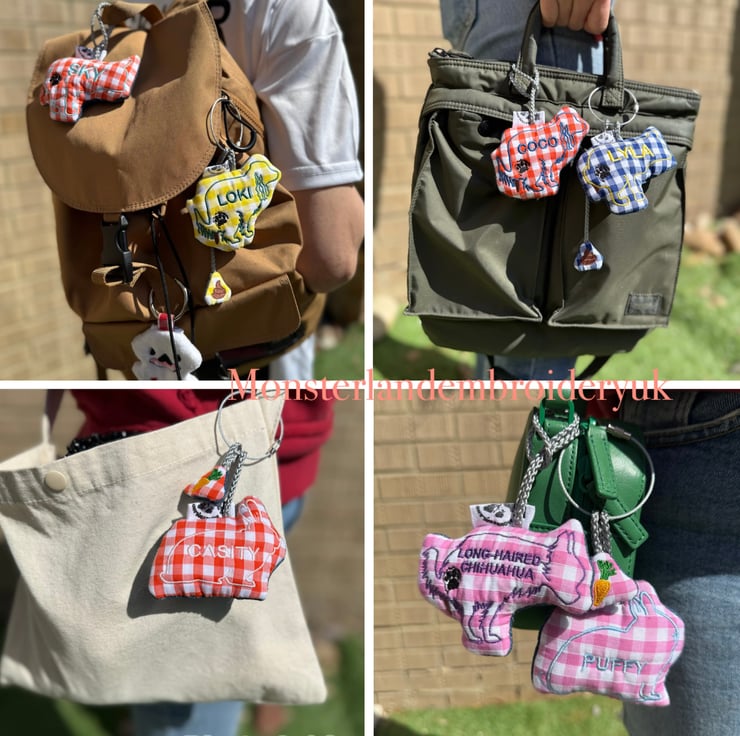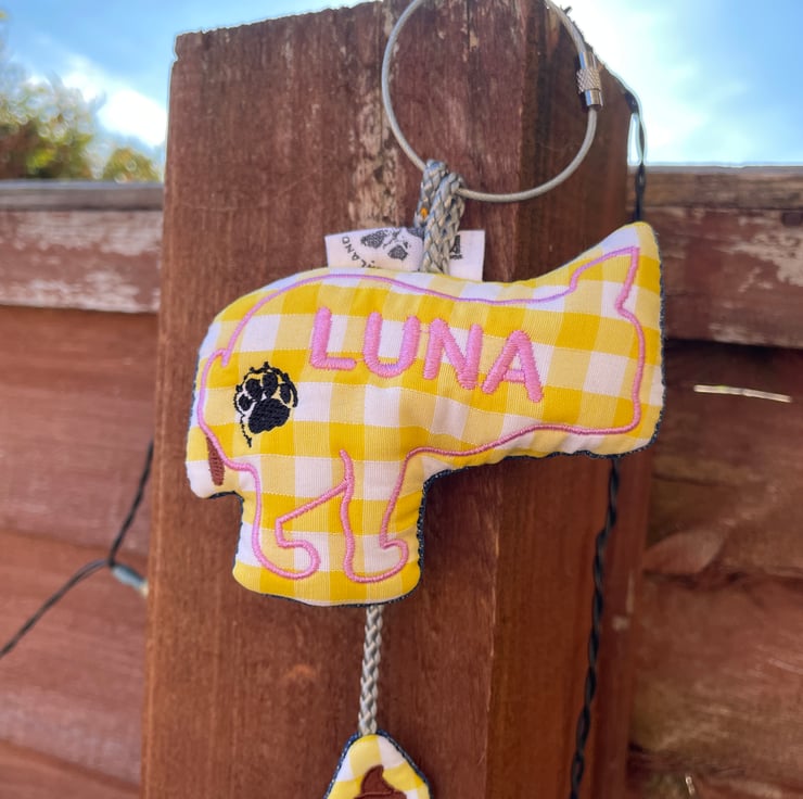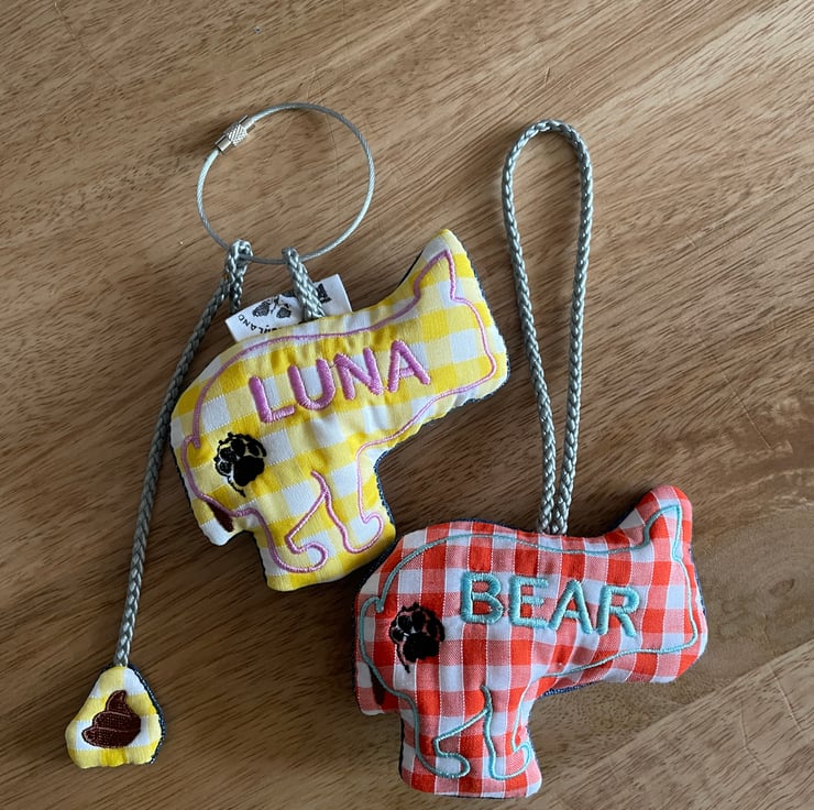 Each charm can be fully customised with your choice of fabric and thread colour to match your style, Cute dog-shaped design with embroidered paw detail.