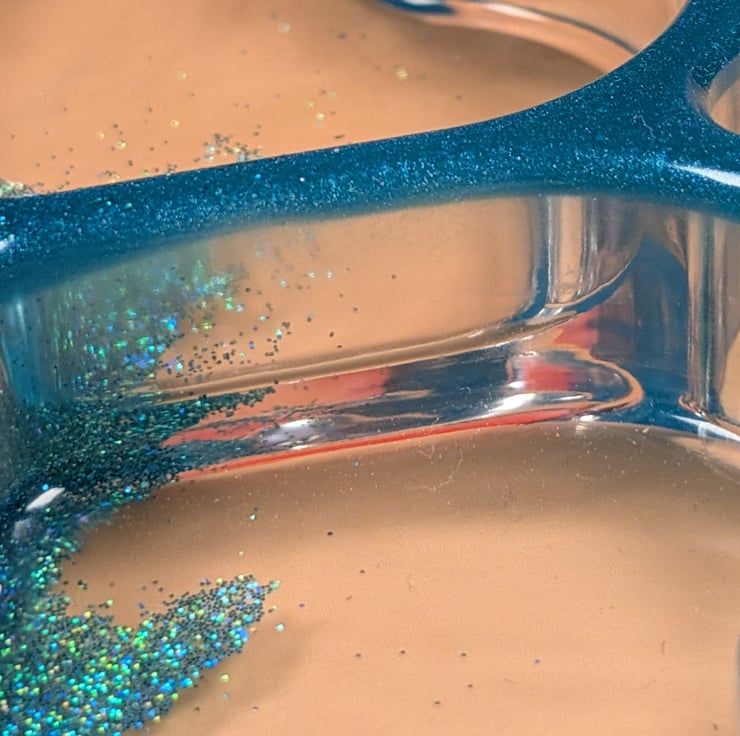 This was going to be a pour with a feathering effect and sprinkles of glitter. The resin decided differently. It cured into this perfect, crisp separation of colour and clear, really highlighting each element more beautifully than I could've imagined.