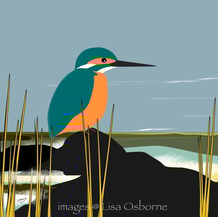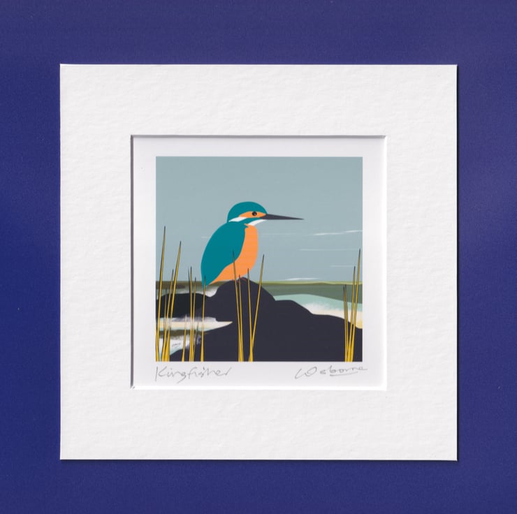 Kingfisher - high quality signed and titled, open edition print, with mount, from one of my illustrations of birds.