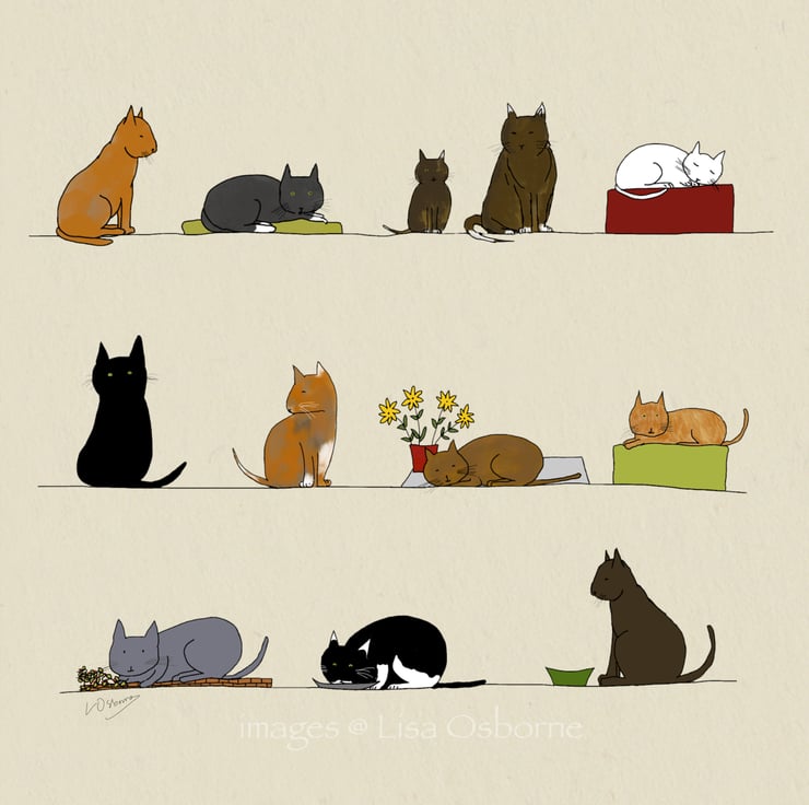 Cats - high quality signed and titled, open edition print, with mount, from one of my illustrations of cats.