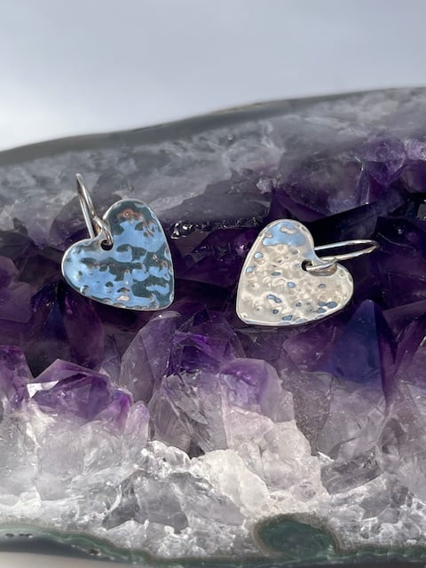 Silver heart earrings with a hammered texture. Heart measures approximately 16 x 16 mm. The earring drop is 23 mm ( including wire).