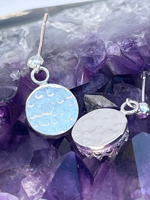 These sterling silver earrings are hand created by me using recycled silver and are excellent for everyday wear and occasional wear.