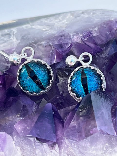 Silver earrings with sparkly blue fused glass - resembles an eye